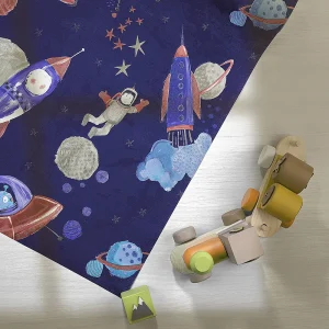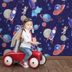 کاغذ دیواری طرح کودک مدل کهکشان فضانوردw12101